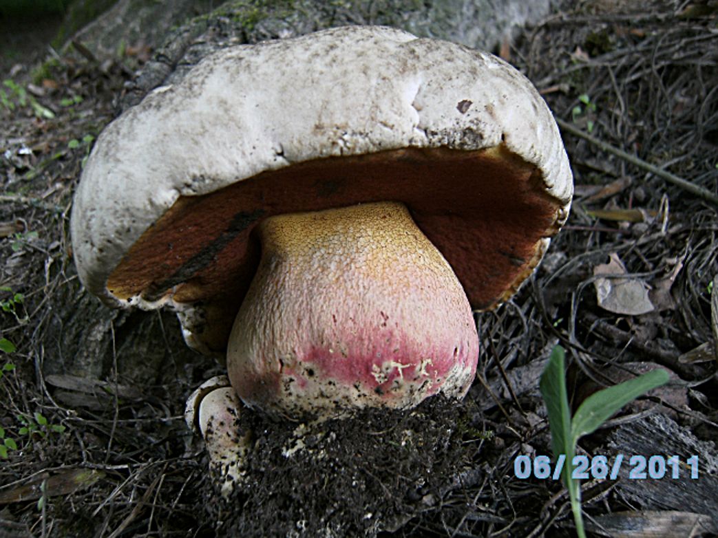 Unsere heutige Pilzexkursion in Bad Friedrichshall am Neckar war ein großer Erfolg, sowohl von der Teilnehmerzahl als auch von den Funden. Fund des Tages waren zwei Satanspilz-Kawenzmänner, vom kleineren der beiden gibt es ein Bild. Weiter wurden gefunden: Amanita lividopallescens, Crepidotus autochthonus, Leccinum carpini, Volvariella pusilla, Russula grisea, vesca, risigallina agg., pectinatoides, Inocybe queletii, rimosa, 2 weitere schwierige Risspilze (einer ohne Metuloide, der andere mit), Polyporus mori, Lepiota castanea cf., Großmengen von diversen Champignons, Faserlingen, Filzröhrlingen und Dachpilzen (alles in allem bestimmt 60 Arten). Hoffentlich dauert die jetzt angekündigte Hitzeperiode nicht lange, dann geht das hier richtig los.