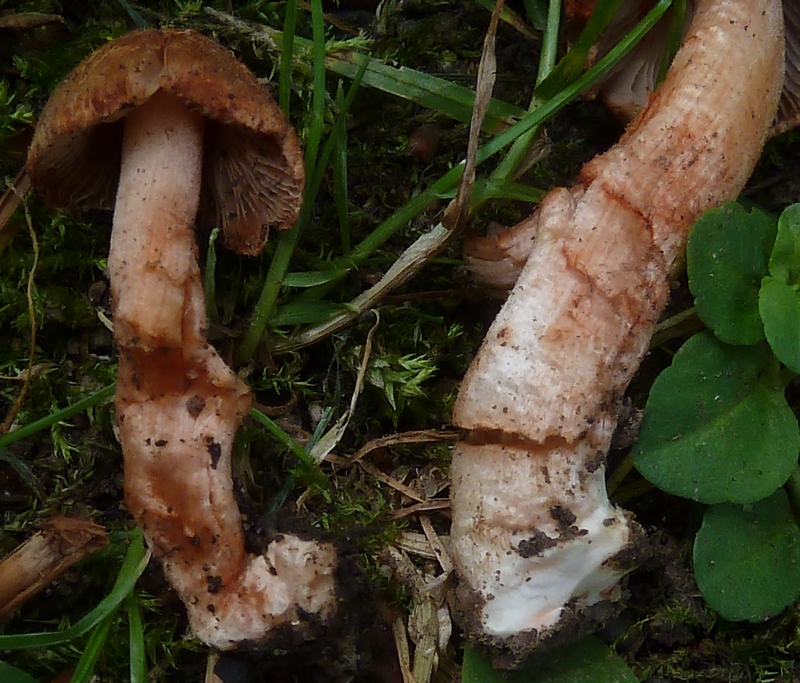 Heute hab ich noch drei rötende Risspilze Sekunden vor dem Rasenmäher für die Wissenschaft gerettet...