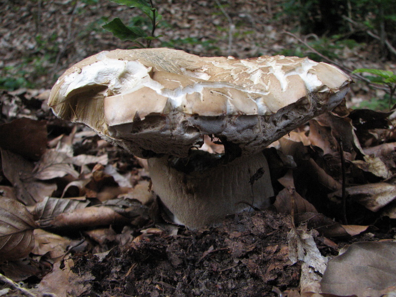 Auf der Rückfahrt entdeckte ich mit dem linken Auge noch etwas am Straßenrand. Vollbremsung. Mein erster Steinpilz in diesem Jahr. Leider keine Schönheit, mit Trockenschaden….