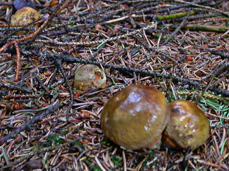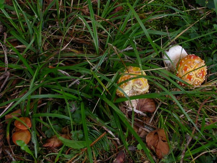 Auf etwa 30 Quadratmeter wachsen die Fliegenplze ausnahmslos mit orangefarbener Huthaut.