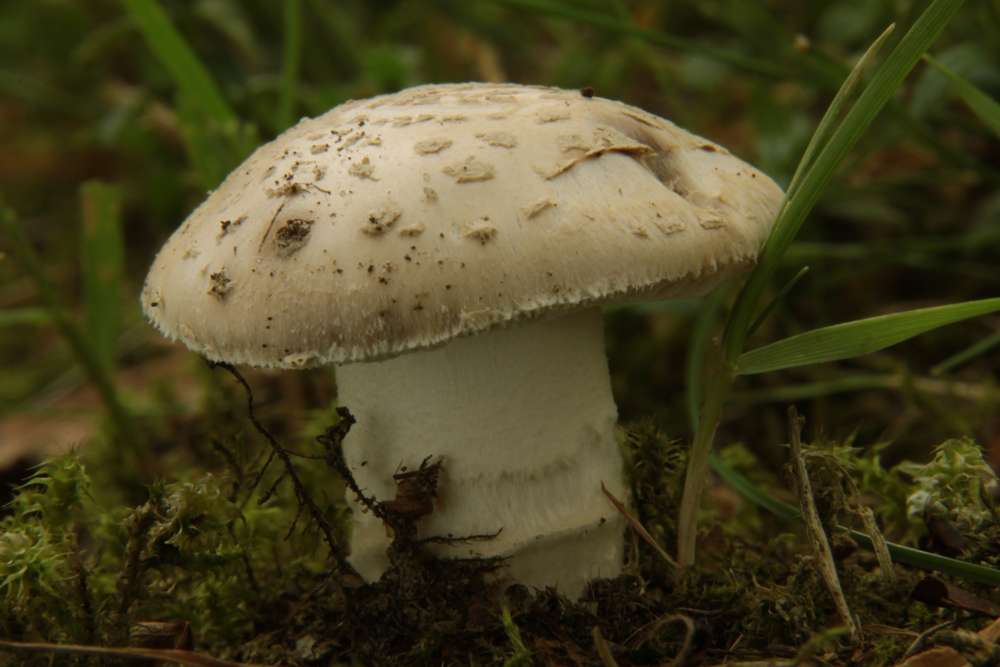 Gestern fanden wir diesen Wulstling im Park des Landeskrankenhauses in Bedburg-Hau bei Kleve. Ich nehme an, daß es zu 90 % der Spitzschuppige Wulstling (Amanita echinocephala oder solitaria)ist. Wir werden die Entwicklung des Fruchtkörpers weiterhin beobachten und auch ein Sporenpräparat anfertigen. Ich werde darüber berichten.