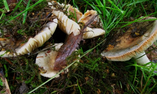 So, jetzt kommen zwei Täublinge. Der erste unter Eiche, ohne besonderen Geruch, Geschmack leicht bitter.