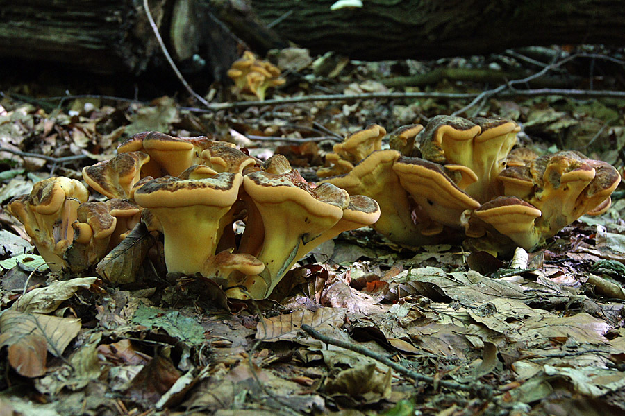 Uralte Eichen u.a Laubhölzer in der Nähe, auf jeden Fall etwas Neues für mich. Mit den zitronengelben Röhrenmündungen, den