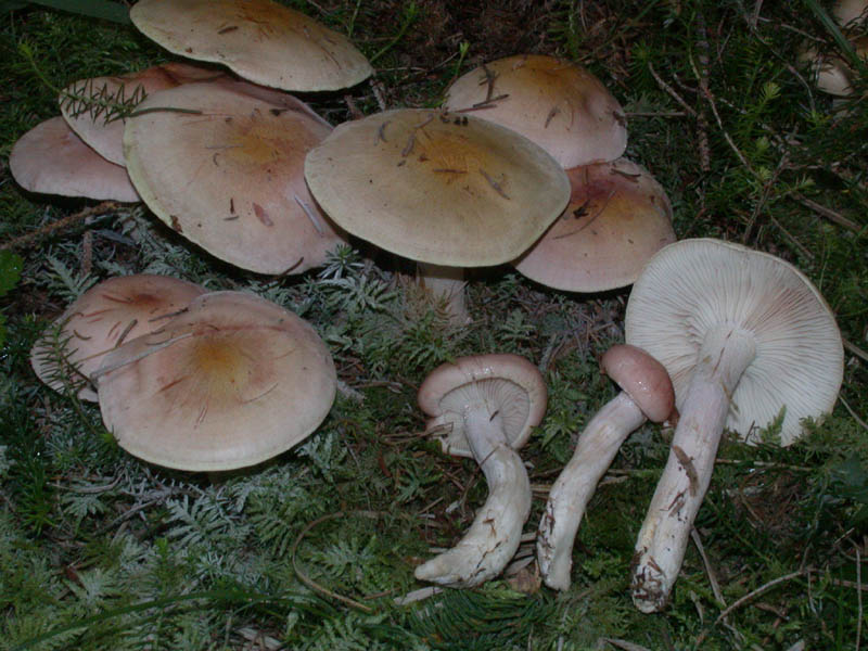 Hallo Werner, H. fragicolor sollte kein Synonym von H. persicolor sein. Papetti hat den Namen H. fragicolor für eine Sippe eingeführt, die speziell in den Dolomiten lange Zeit als H. persicolor bestimmt wurde, und die Merkmale herausgearbeitet, aufgrund derer sich beide unterscheiden. Wenn ich mich richtig an das erinnere, was er uns mal gesagt hat, dann ist H. fragicolor die Art, bei der die Rottöne im Verlauf der Fruchtkörperentwicklung ausblassen. Außerdem gilbt die Art und kommt zumindest nach meiner Erfahrung im Kalknadelwald vor. Und ein Kalknadelwald wird wohl Hans' Sammelgebiet sein ... Ich häng mal ein Foto ran (Hygrophorus fragicolor). Beste Grüße nach Bayern, Jesko