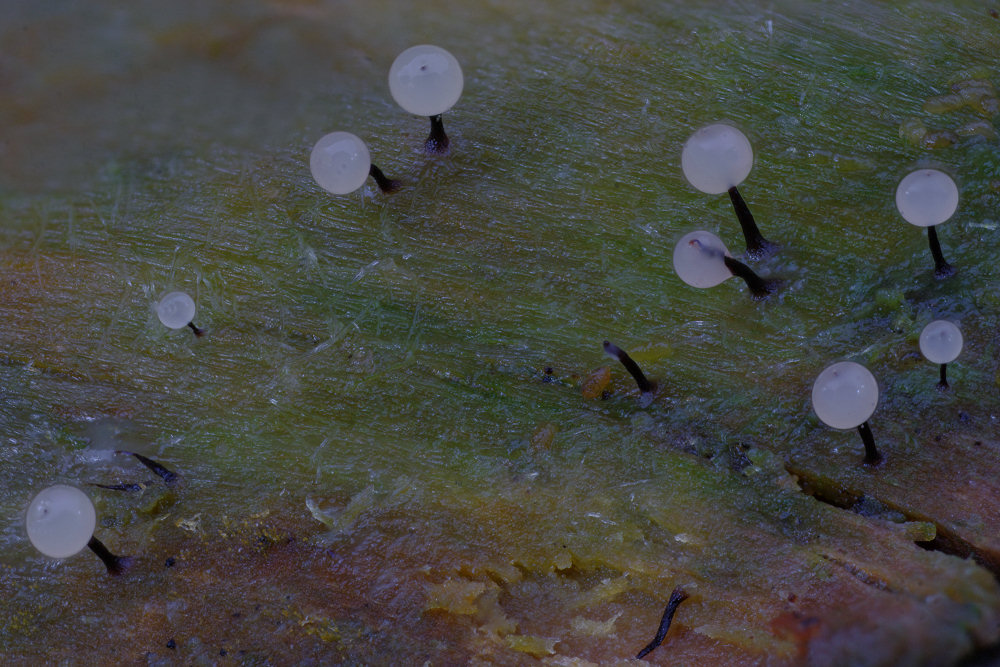Hier noch ein Bild von vermutlich Comatrichia nigra. Ist zwar nicht astrein wie ich es wollte, weil die weissen Köpfe oft ein Halo tragen wenn man stackt, aber man sieht was alles möglich ist. Hier zu habe ich das 70er Makro und 3 Zwichenringe verwendet mit 13mm, 21 und 31 mm. Die Schleimer waren ca. 1,5 mm gross.