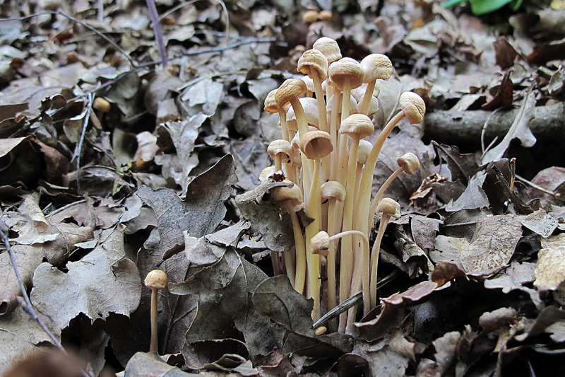 Liebes Forum, auf Eichenblättern am Wegesrand fand ich zu Hunderten diesen büschelig wachsenden Pilz. Länge der Stiele bis zu 100 mm, Durchmesser des Hutes < 10 mm. Leider konnte ich keinen überreden, mal ein paar Sporen zu zeigen. Sicher kann mir jemand auf die Sprünge helfen... LG Hans-Peter