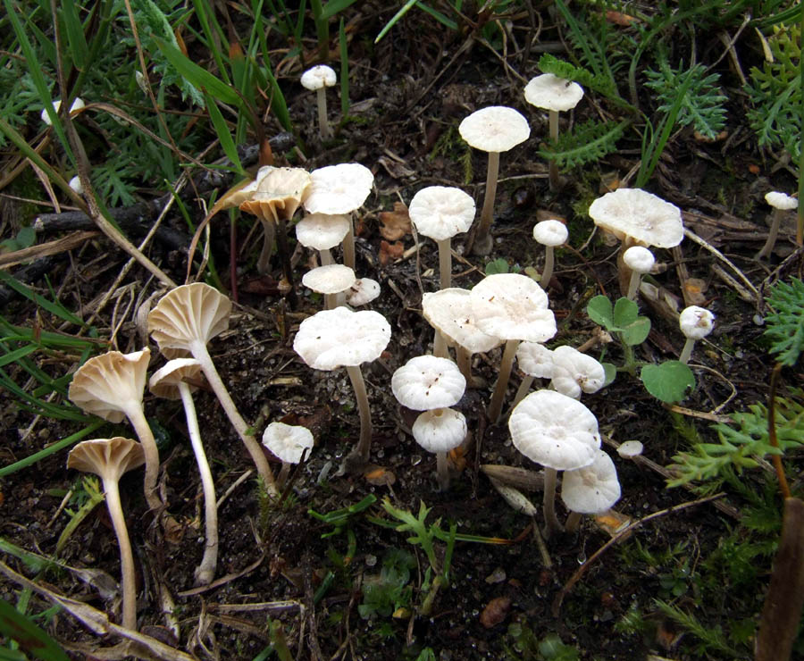 ... scheinen heuer einen ganz guten Sommer zu haben: In nur einer Woche gab es zwei Funde von Marasmiellus tricolor var. graminis mit jeweils Dutzenden von Fruchtkörpern.