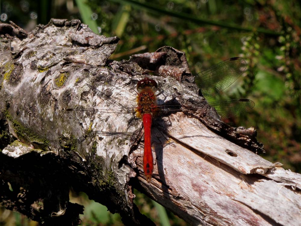 Auch unter Fichten am Rand zum Moor. Das dürfte wohl die Flattrige Fichtenkoralle Ramaria cf flaccida sein. Zwischendurch machte ich einen Abstecher zu den Insekten. Genauer, zu den vielen bunten Libellen. Wobei die fototechnisch schon ziehmliche Biester sind.
