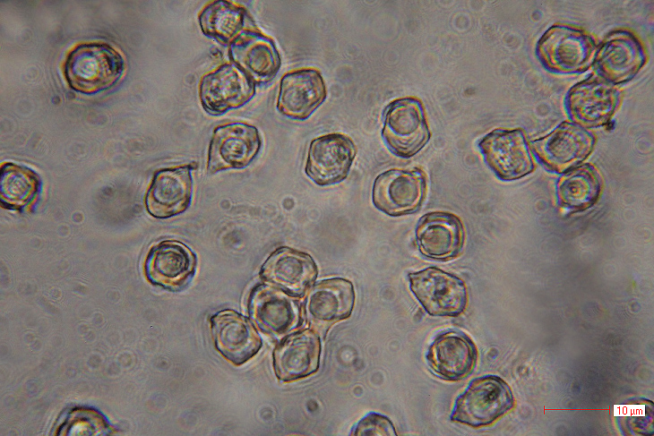 Lamellen rel. dicht, fleischbräunlich, ausgebuchtet angewachsen, mit Lameletten-