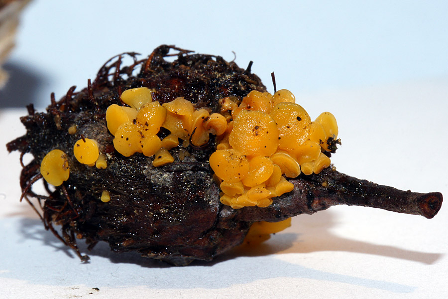 7. Ein weiteres seltsam hängendes "Becherchen" stammt noch vom Waldweg, wahrscheinlich an Engelwurz gewachsen.