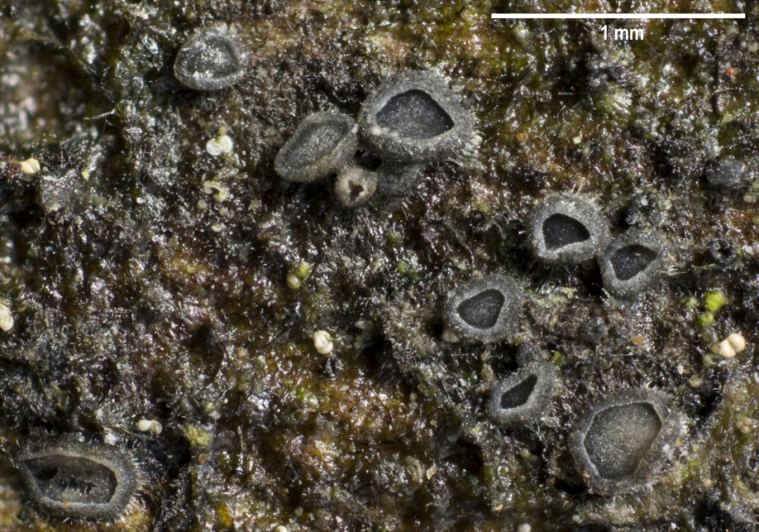 Jüngst hat mir jemand ein Stück Totholz (vermutlich Eiche) mit Apothecien darauf vorgelegt, die nach einer Flechte aussahen. Das Holzstück war mit einem glänzenden, dunklen Überzug versehen (vermutlich Cyanobakterien). Der mikroskopische Apothecien-Schnitt ließ keine Algen erkennen - also keine Flechte, sondern ein Pilz. Um dem Ratsuchenden weiterhelfen zu können, füge ich ein Bild bei, verbunden mit der Bitte um Bestimmung, sofern das nach dem Bild möglich ist.