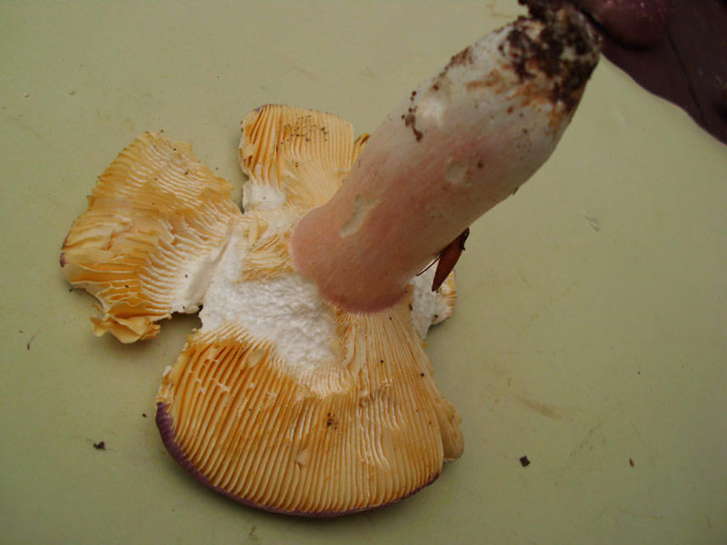 Hut jung halbkugelig,cremige Lamellen die bei zunehmender Reife dotterfarbig werden und auch sehr spröde sind.Das Trama und die Lamellen sind mild.Ein Sporenbild wollte er mir nicht geben.Der Pilz hat eine feste Konsistenz.