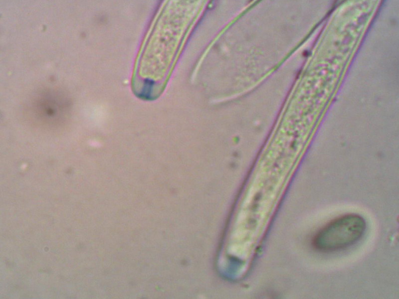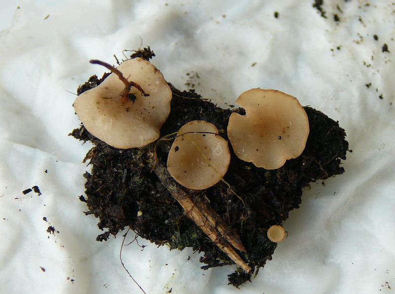 Liebe Pilzfreunde diese Teilchen übergab mir Regine Wandelt (Fachgruppe Mykologie Quedlinburg) mit Bitte um Namenspreisgabe. Nun, der erste Schritt ist getan, erinnert mich irgendwie an eine Ciboria (Sporenform und gestielte Fruchtkörper). Wird der Pilz bestimmbar sein? (Pilze noch in feuchter Schachtel)