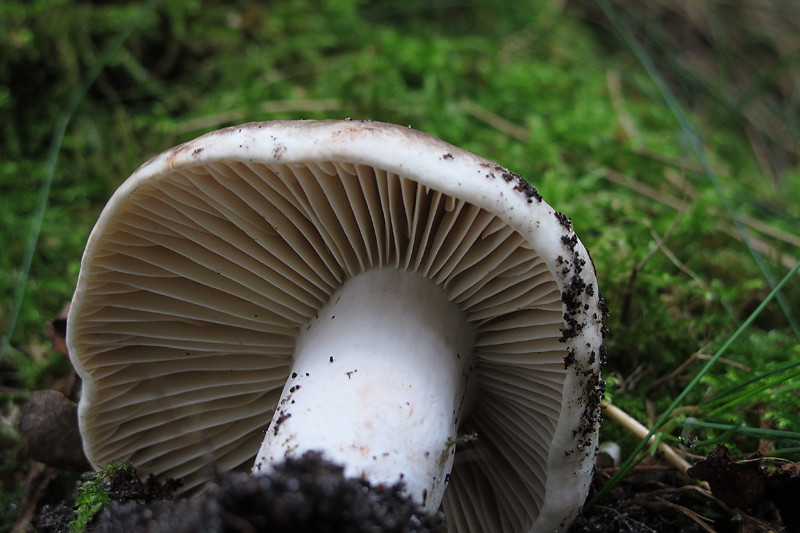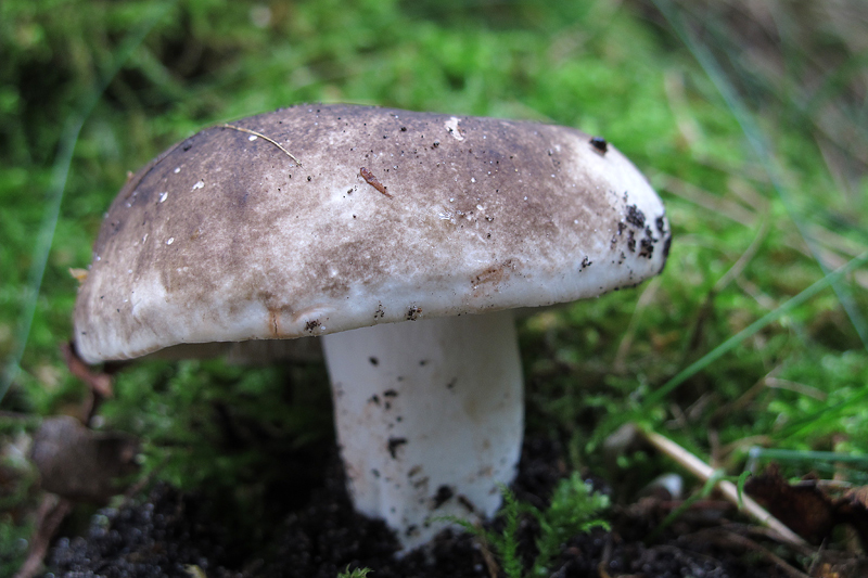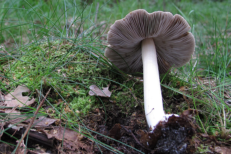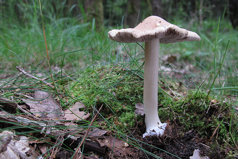Inocybe spec. ebenfalls unter Eichen (Hutdurchmesser 8 cm, gebuckelt, radialrissig, glatt; Stiellänge 10 cm, glatt, knollige Basis)