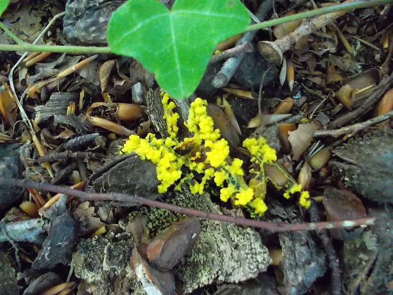 In letzter Zeit finde ich öfter diese gelben, vermutlichen Schleimpilze. Auf Laub und Holzresten. Die haben immer nur diese Größe. Wenn ich nach ein paar Tagen wieder dort bin, sind die weg. Ob der momentane Dauerregen die zerstört, oder Tiere die fressen, keine Ahnung. Bei gelben Schleimpilzen habe ich im Internet bisher nur die Gelbe Lohblüte gefunden. Aber die soll verästelt sein.