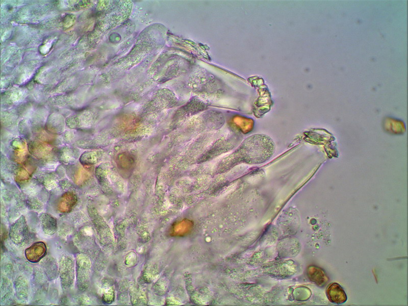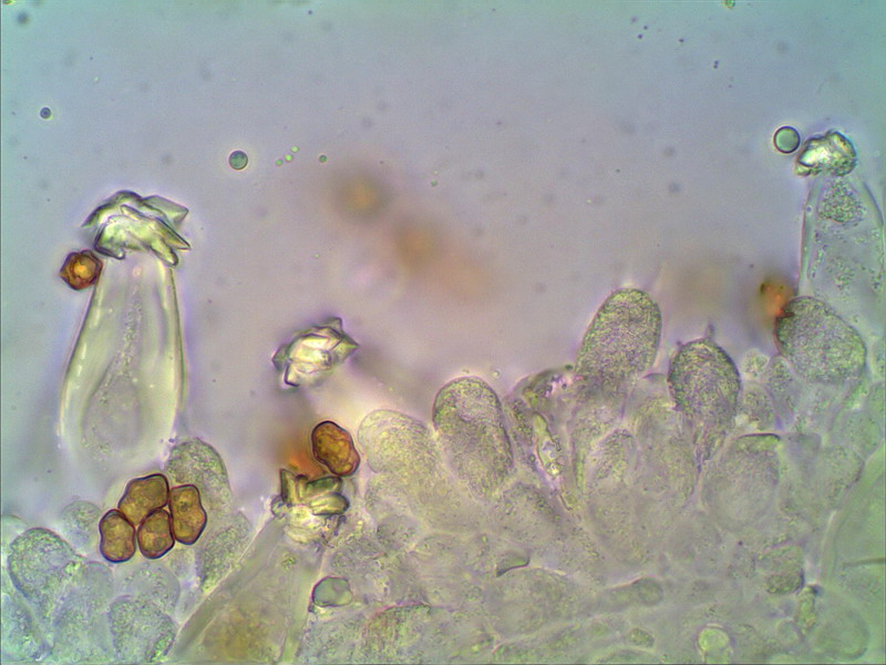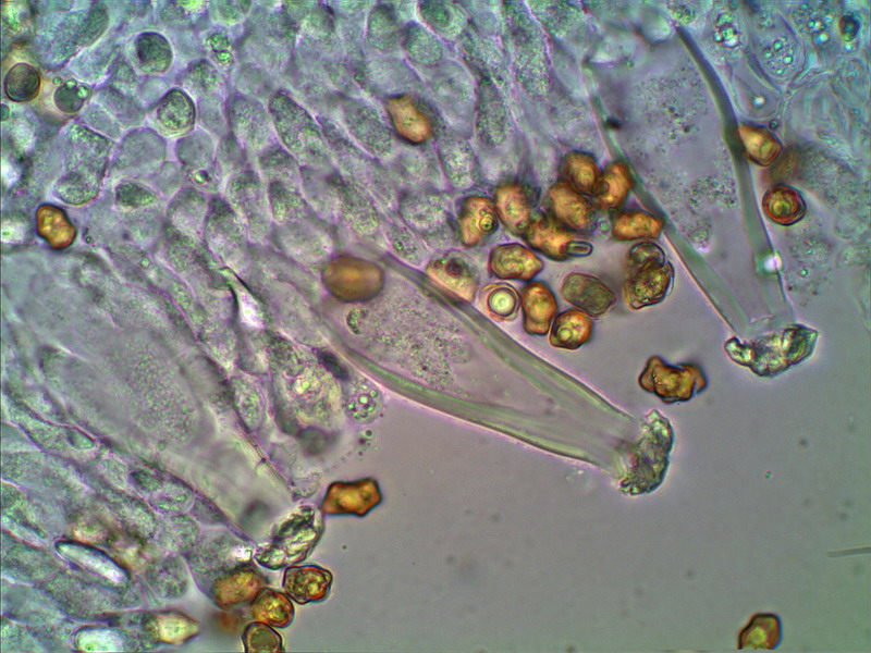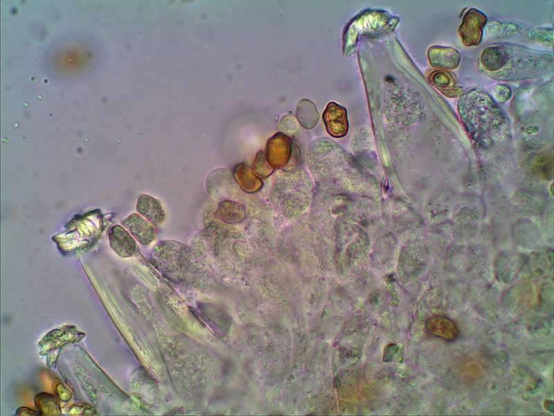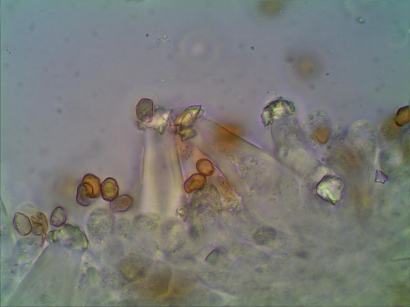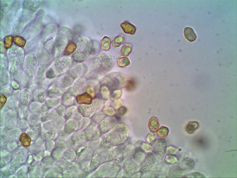 Hallo Helmut Genau der ist es wieder. Hier mein Erstfund August 2009 an ziemlich gleicher Stelle: http://www.pilzepilze.de/cgi-bin/webbbs/parchive2009.pl?noframes;read=166750 Damals mußte ich noch mit einer Handskizze dienen, mittlerweile habe ich mich etwas weiterentwickelt und kann nun die damals angefragten Mikrofotos nachschießen: