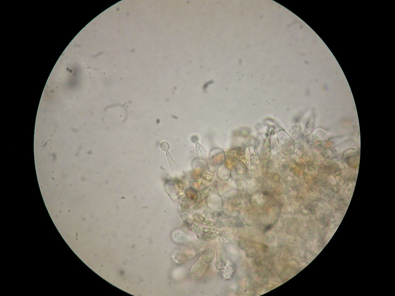 Liebe Pilzfreunde, gestern hatte ich en passant einen Häubling von einem morschen Laubholzstamm mitgenommen. Schön honigbraun, geriefter Hutrand, klein (Hut < 2 cm). Unter dem Mikro wurde ich dann immer mehr verunsichert. Könnte der Pilz auch eine Conocybe sein? Da ich bisher beide Gattungen noch nicht mikroskopiert habe brauche ich Hilfe vom Forum. Zu welcher Gattung passen diese Merkmale: Lamellentrama aus blasigen kurzen Elementen. Pleurozystiden keine gesehen. Kaulozystiden keine gesehen (oder übersehen).