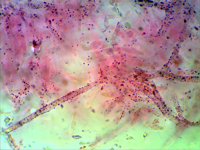 Sulvovanillin zeigte wie vermutet eine sofortige himbeerrote Färbung auf dem Stiel. LG Hartmut