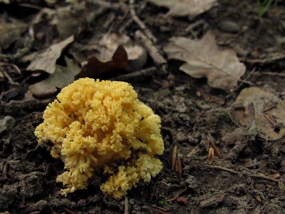 Nach dem Seitenwechsel besuchte ich zuerst die dicke Eiche mit dem Harzigen Lackporling. Schon ziehmlich alt und nicht mehr fotogen, aber den Baum werde ich weiter im Auge behalten. Danke coco! Am Rand des Eichen-Elsbeeren-Mehlbeeren Wald lugten sogar zwei Korallen aus dem Boden.