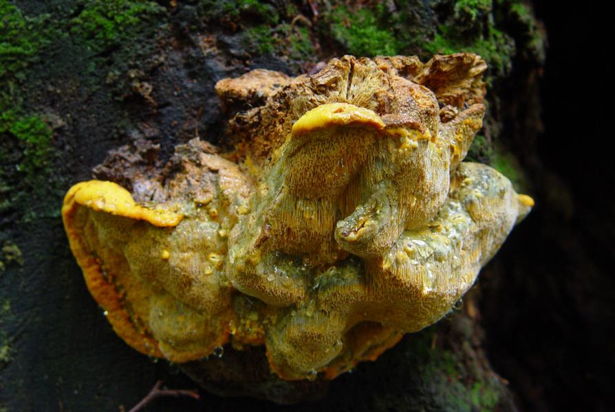 Das ist Hapalopilus croceus. Vor 25 Jahren im exakt gleichen MTB - Quadranten schon einmal von Frau Ullrich gefunden. Das war der letzte Fund aus ST. Sicher seitdem immer mal wieder dort gewachsen- aber es war anscheinend niemand da, der den interessant fand. Gruß Peter