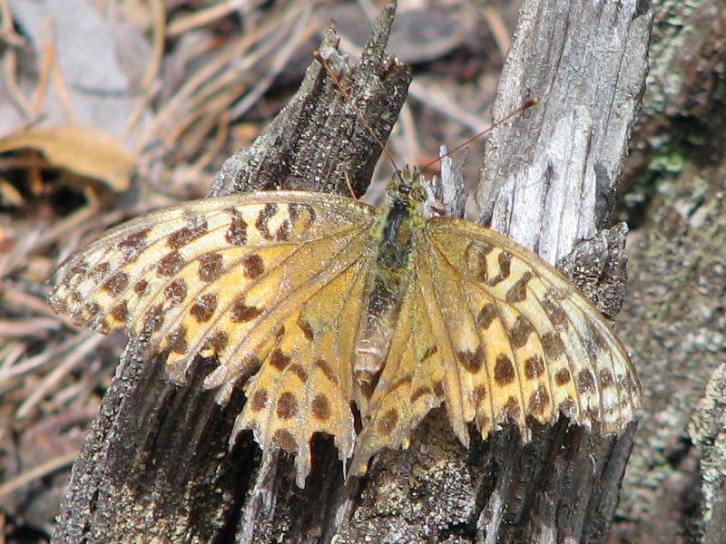 Auf der Wiese davor noch dieser seltene Schmetterling, ein Feuriger Perlmutterfalter (Argynnis adippe), in RLP Rote Liste 2.