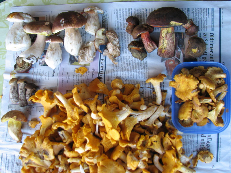 Und hier die Tagesausbeute. Die Menge der Pfifferlinge ist „haushaltsüblich“ :-)