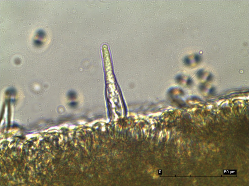 Hutoberfläche hymeniform mit reichlich Pilozystiden