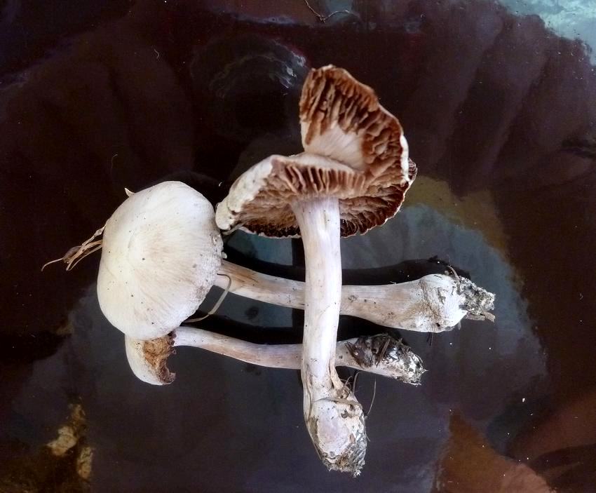 Sollte eigentlich mit dieser verdickten Stielbasis kein Problem sein. Doch bisher suchte ich in Richtung Rötling und Risspilz noch vergeblich. Falsche Richtung? Ev. Rübling? Wer kann mir helfen?