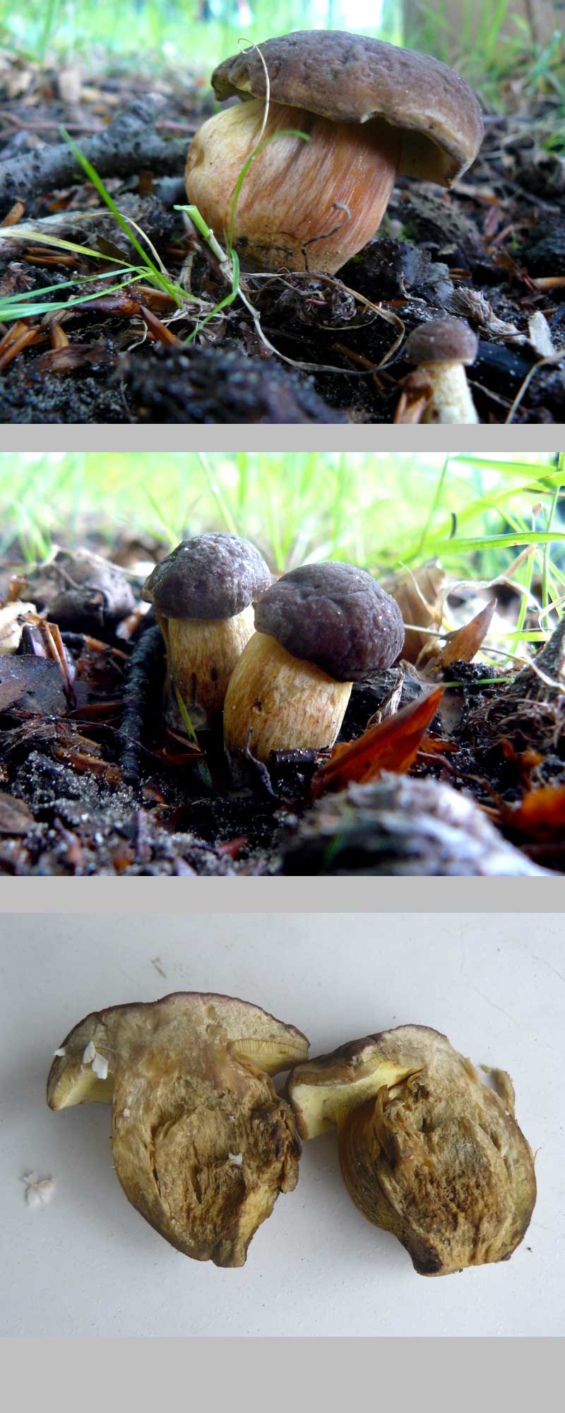 Guten Morgen, liebe Pilzfreunde, Bei diesem Bolet bin ich mir unsicher. Er stand auf kalkreichem Sand in einer alten Buchenallee. Beim Anfassen blaute er ziemlich zm Stiel und den Röhren, aber das Blau verschwand nach kurzer Zeit wieder. Die Röhren, auf den Fotos leider nicht so gut zu sehen, waren kräftig hell gelb. Auch beim Durchschneiden der Bolet wurde er etwas blau, das verschwand auch wieder. Könnte es sich hier um den Anhängselröhrling - Boletus appendiculatus handeln? Nur der Stiel des größten Röhrlings war etwas rötlich. Liebe Grüße und im voraus schon mal vielen Dank