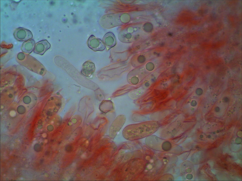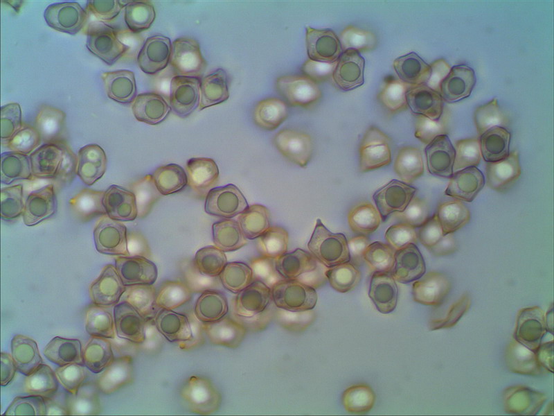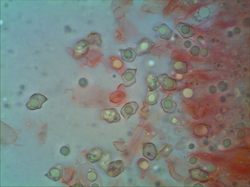 So, da haben wir uns mal ins Neuland gewagt, mit Rötlingen habe ich sehr wenig Erfahrung. Literatur habe ich den LUDWIG, PdS und zwei Bände Fungi Europae über Rötlinge und den Gröger, was weiß ich was noch. Was ich nicht habe ist Erfahrung mit Entoloma, deshalb bezeichne ich mich auf diesen Gebiet als Anfänger. Soweit ich es gelesen habe, sind Sporenform und >Größe, Schnallen ja und nein, Cheilozystiden und HDS die untersuchenden Merkmale. Wie die Sporen zu vermessen sind bei diesen Krickeldingern, muß iich erst mal nachlesen. Ich fange einfach mal an, ein paar Mikros zu zeigen, frei nach der Devise: WIRD SCHON! :O)
