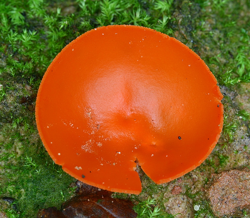 Hierbei handelt es sich um einen jungen Orange Becherling (Aleuria aurantia).