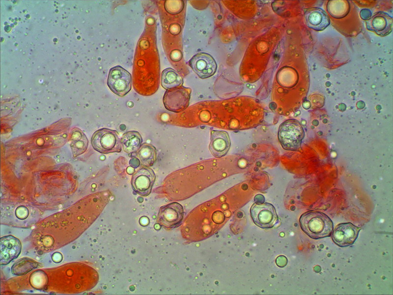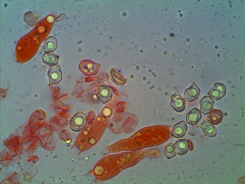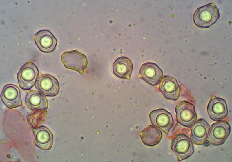 So liebe Pilzfreunde, da bin ich wieder. Machen ganz schön Streß diese Entolomen, nach einen harten Arbeitstag sich mit solch schweren Pilzen zu beschäftigen. Erst einmal sehen alle Sporen (fast) gleich aus, nämlich eckig. Ja, die feinen Unterschiede habe ich nun schon gelesen und versuche sie auch zu sehen. Mit den Cheilocystiden kann ich mich noch nicht so richtig anfreunden, entweder haben meine Dinger keine oder sie sind unmerklich im Hymenium versteckt. Ich kann nun erst eimal zeigen, was ich bisher unterm Mikro gesehen habe. Ich verstehe diese Sache hauptsächlich als Übung, um mich langsam in der Gattung vorzuarbeiten. Wenn die eine oder andere Art sicher anzusprechen ist, wäre das natürlich schön, wenn nicht dann habe ich halt geübt. Machen wir also weiter mit Kollektion 09: