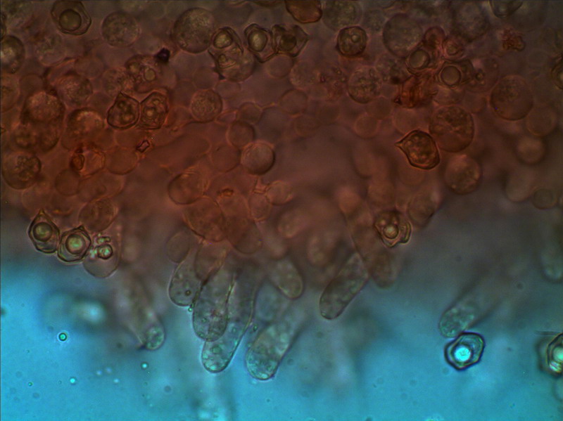 Vielen Dank Karl Habe mich noch mal auf die Suche gemacht und auf der Lamellenschneide diese Zystiden (?) gefunden. Vorsorglich habe ich den Pilz zum Trocknen ausgelegt. Entoloma corvinum ist für Sachsen Anhalt erst einmal angegeben, in einen meiner Exkursionsgebiete im Vorharz, wohlmöglich aber nicht mikroskopisch untersucht worden. LG Hartmut