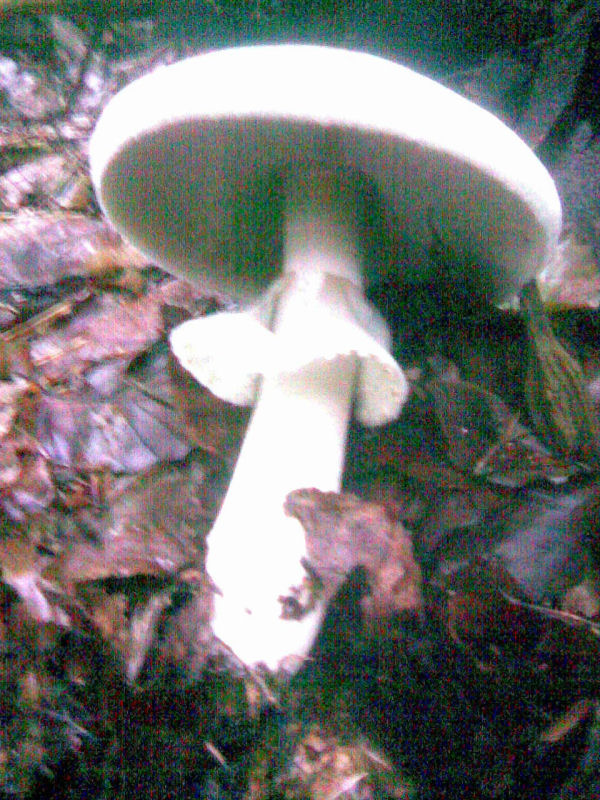 Guten Morgen, ich habe mich ein paar Tage geschämt wg. des schlechten Fotos und eigentlich auch weil ich mir auf den ersten Blick im Wald ganz sicher war, einen Weißen Knollenblätterpilzt vor mir zu haben. Er war riesig: Hutdurchmesser weit über 10 cm, fast 20 cm hoch und schon von Weitem zu sehen. Und alles schneeweiß, auch die Blätter auf der Unternseite. Aber bereits im Wald kamen mir Zweifel, ich konnte auch nach Wegschaben des Bodens einfach keine Knolle finden. Dann habe ich das Handy gezückt und das Foto hier gemacht, mit leider sehr mäßiger Qualität, man sieht noch ncht einmal ob die Manschette gerieft ist oder nicht.