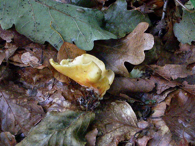 Und ganz nahe eine Hainbuchenrotkappe, blauend bei Berührung.