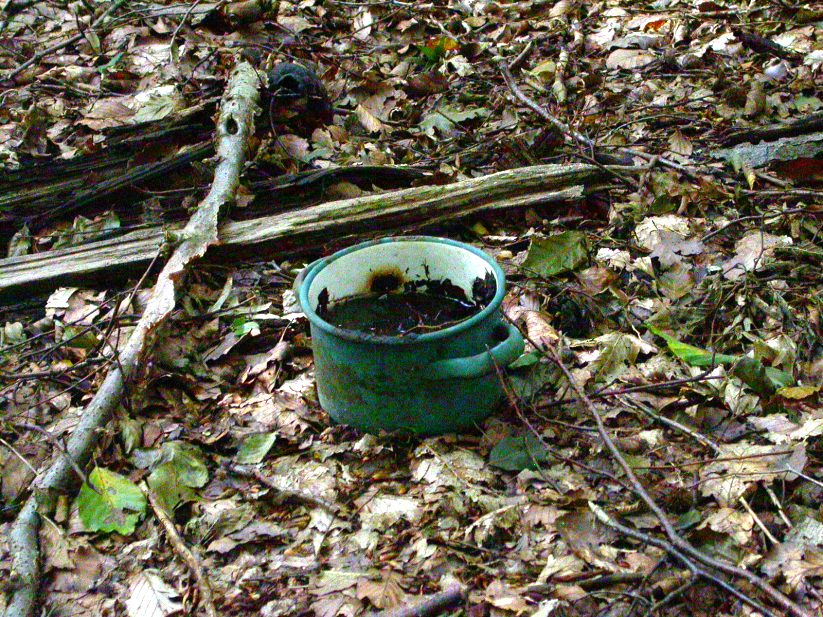 So einen leeren Wald habe ich noch nie gesehen. Einsam und alleine stand da dieser Kochtopf.