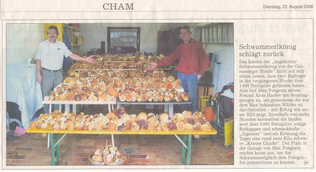 sozusagen wie mit dem Fischhändler und dem Schmied im gallischen Dorf :-) Diesmal etwas verkleinert. Die beiden konkurrierenden "Schwammerlsucher" mussten dann im Landratsamt antreten und sich über die Naturschutzgesetze belehren lassen. Ob auch eine Strafe fällig wurde, war nicht mehr in der Zeitung zu lesen. Gruß Helmut