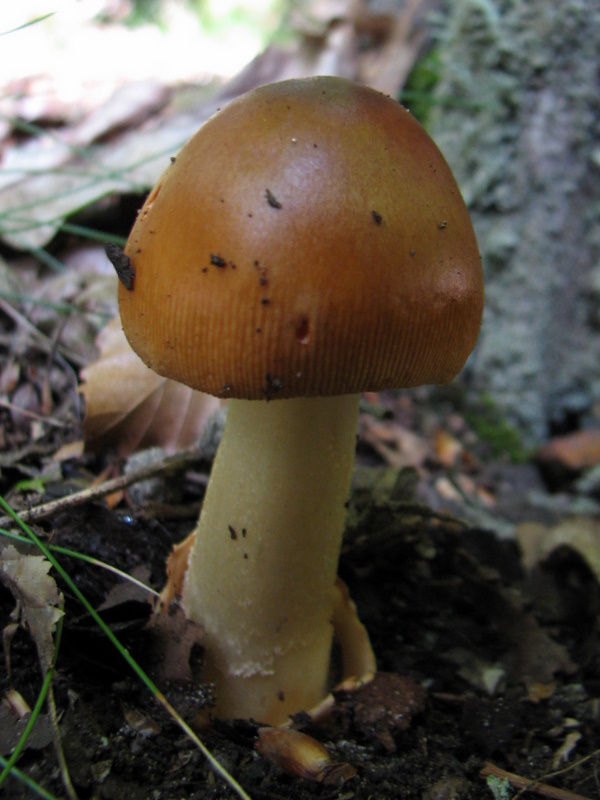 Ein weiterer Einzelgänger, ein Fuchsiger Scheidenstreifling (Amanita fulva)