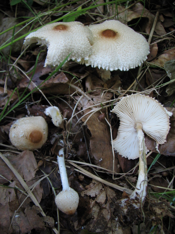 Diese Wolliggestiefelte Schirmpilze (Lepiota clypeolaria) in mehreren Gruppen auf und neben dem Wegschotter, für mich ein Erstfund. Geruch unbedeutend, Sporen im Mittel 15 x 5 mü, Sporenform wie im Bon abgebildet.