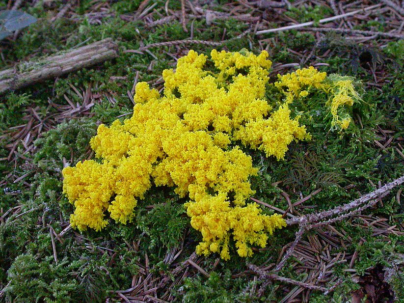 In dem fast leeren Wald freute ich mich über jeden Farbklecks. Wie diesen Schleimpilz