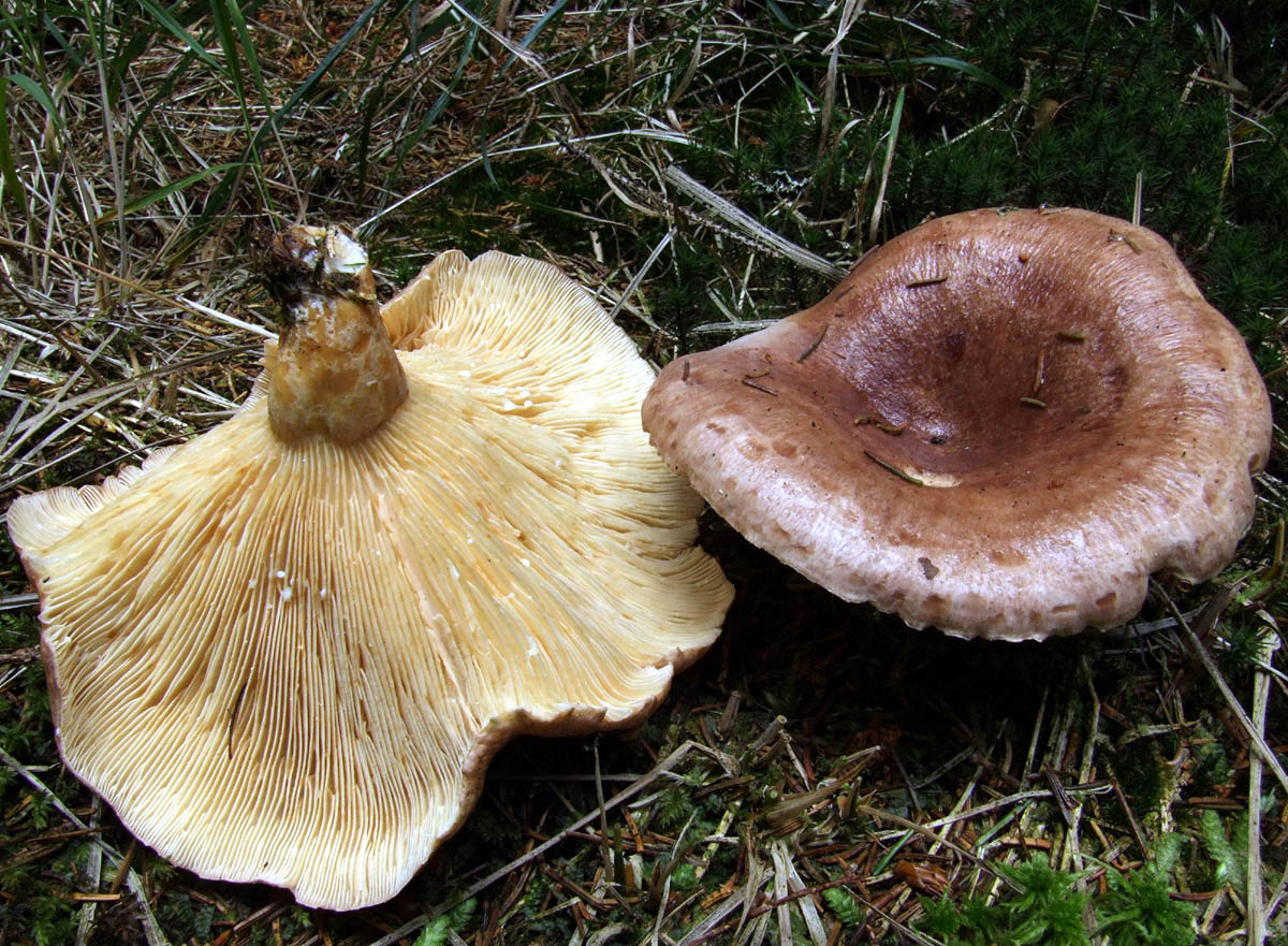 Die letzten paar Tage habe ich im Harz verbracht. Während in den unteren Lagen - zumindest im Ostharz - die Pilzsuche derzeit kaum lohnt, lässt sich ab ca. 500 m schon einiges finden. Der im feuchten Fichtenwald auf sauren Böden heimischen Kuh war ich nun auch schon einige Jahre nicht mehr begegnet, sodass ich ob der Wiedersehensfreude gleich ein Erinnerungsfoto geschossen habe: Kuhroter Milchling (Lactarius hysginus) Auf dem Foto sieht man auch gut, warum Britzelmayr bei seiner Beschreibung dieser Art auf den Namen Lactarius curtus ("Kurzstielmilchling") gekommen ist.