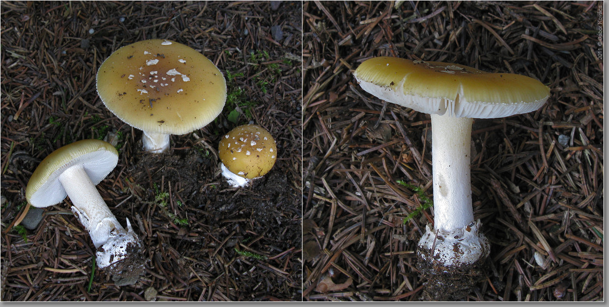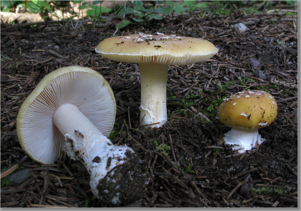 : es gibt auch eine gelbe Form vom Grauen Scheidenstreifling, die Amanita