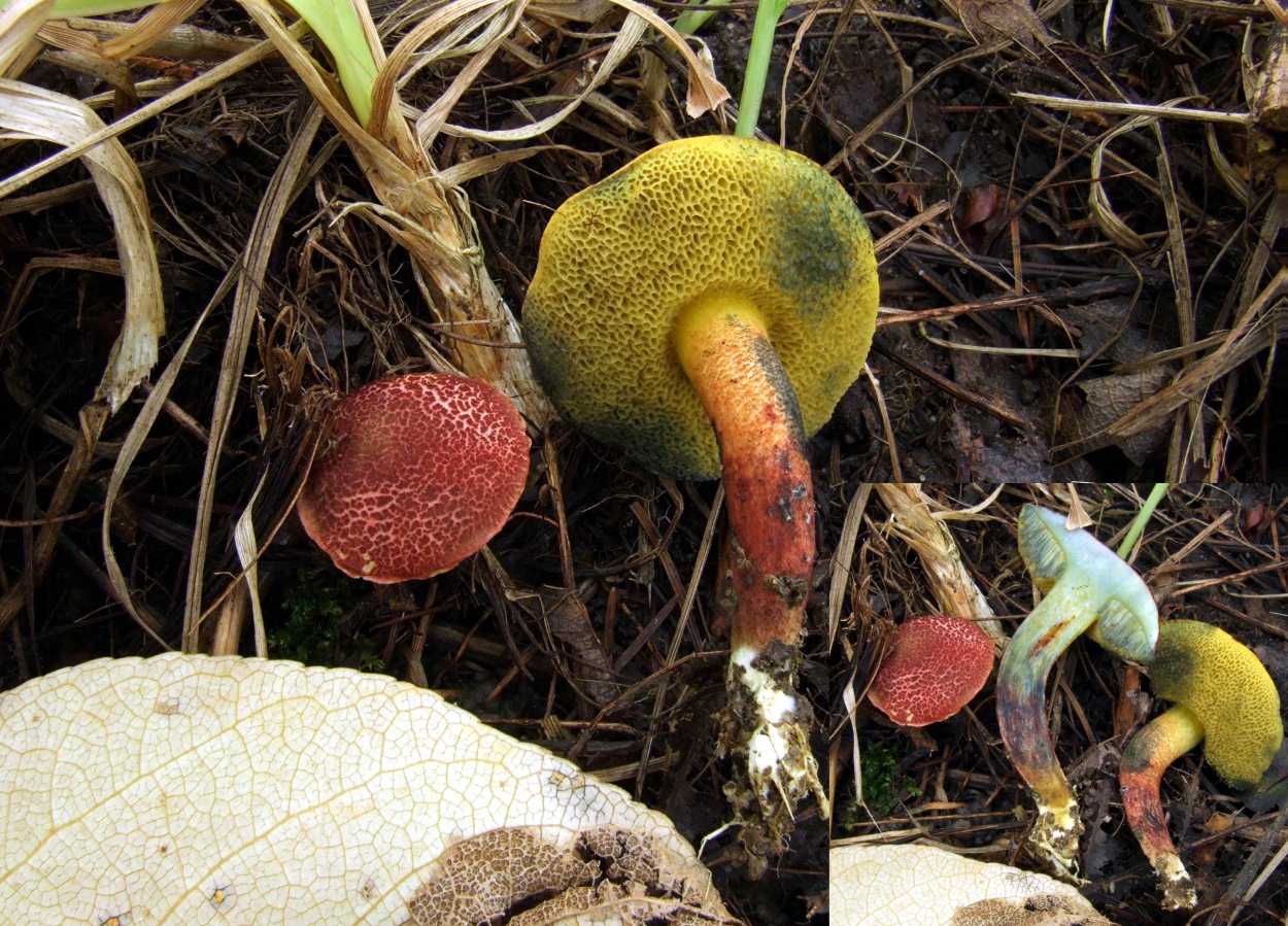 ... dürften diese beiden Kandidaten sein. Dafür sprechen zumindest nach meiner Einschätzung die Makromerkmale (dunkelroter, stark felderig aufgerissener Hut, weinrote Farbe im Stiel, recht starkes Blauen im gesamten Fruchtkörper) und der Standort bei Balsampappel unweit eines Restlochseeufers. Das Mikromerkmal der Sporenrippung kann ich mit meinem Equipment ohnehin nicht zuverlässig prüfen. Falls jemand einen Trick kennt, wie man dieses Merkmal auch ohne DIK (oder gar REM) beurteilen kann, bin ich für jeden Hinweis dankbar. Wenn etwas mehr Zeit sein wird, schaue ich mir freilich mal die Sporen an. Zumindest über die Maße lässt sich auch einiges klären, und außerdem will man ja keine Überraschungen von wegen trunkate Sporen oder so erleben.