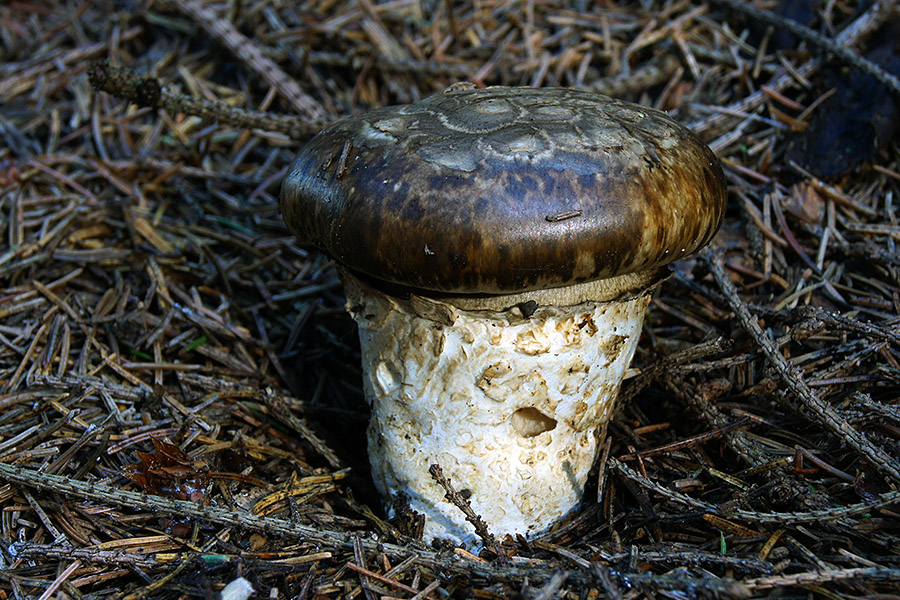7. Anders als auf dem Foto (bei dem ich in Schräglage im Gebüsch festhing), in Natura ein sauschöner Pilz -