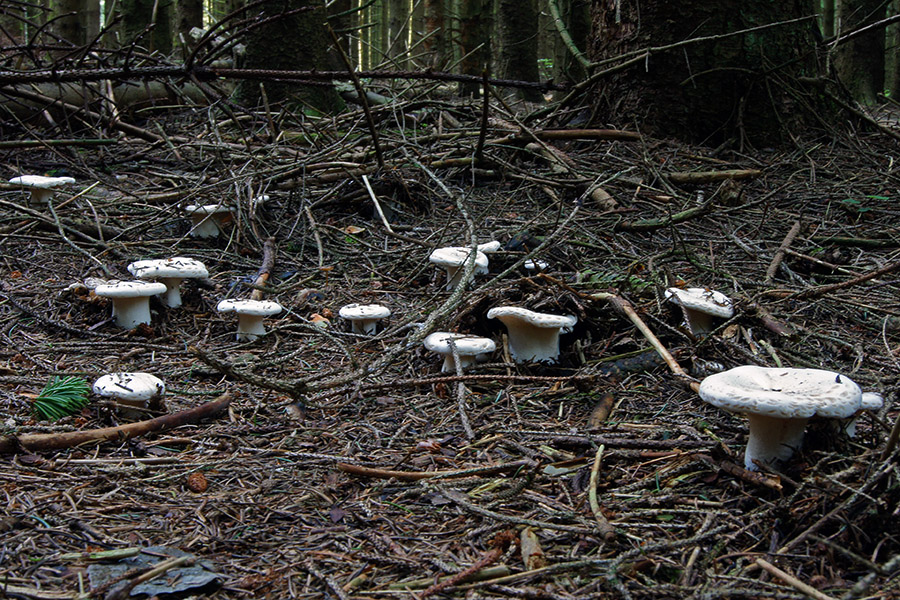4. Relativ häufig dort, mal sehr klein, mal annähernd riesig, Riesen-Krempentrichterling - Leucopaxillus giganteus: