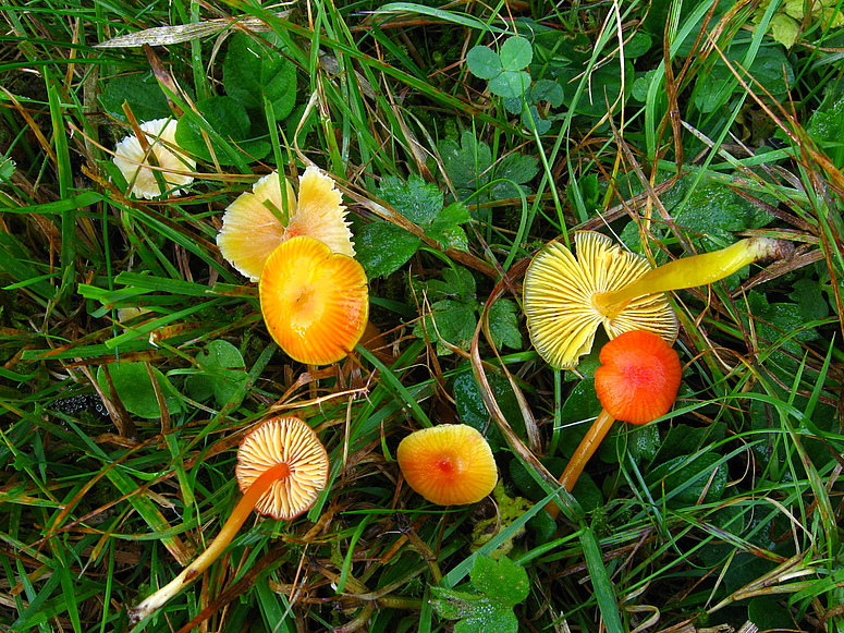 Hut und Stiel mit Schleimschicht könnte Hygrocybe glutinipes sein.