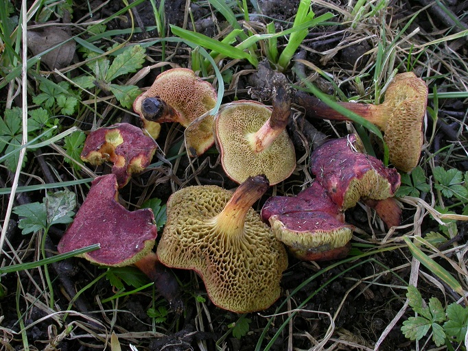 Das Fleisch verfärbt sich erst nach Minuten im Hut und auch im nicht dunklen Stielbereich blau.