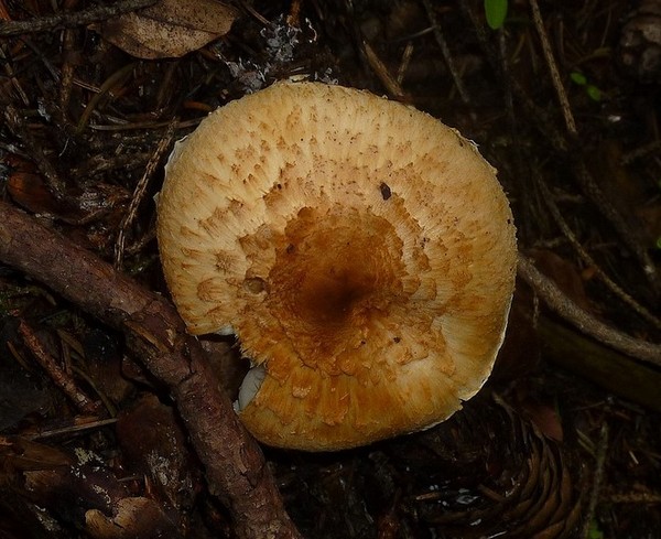 Vor gut einem Jahr platzierte ich diesen Pilz ins Forum. Ich hab diese Eingabe allerdings nicht mehr ermitteln können. Der Pilz ist entlarvt und ich freue mich, euch das Ergebnis der Prüfungen 2010 und 2011 nochmals bekanntzugeben. Es ist ein Schirmling, wie damals vermutet: Lepiota ochroceofulva, eine Pilzeart, welche in der Schweizer Kartierung seit längerer Zeit nicht mehr eingegeben wurde.