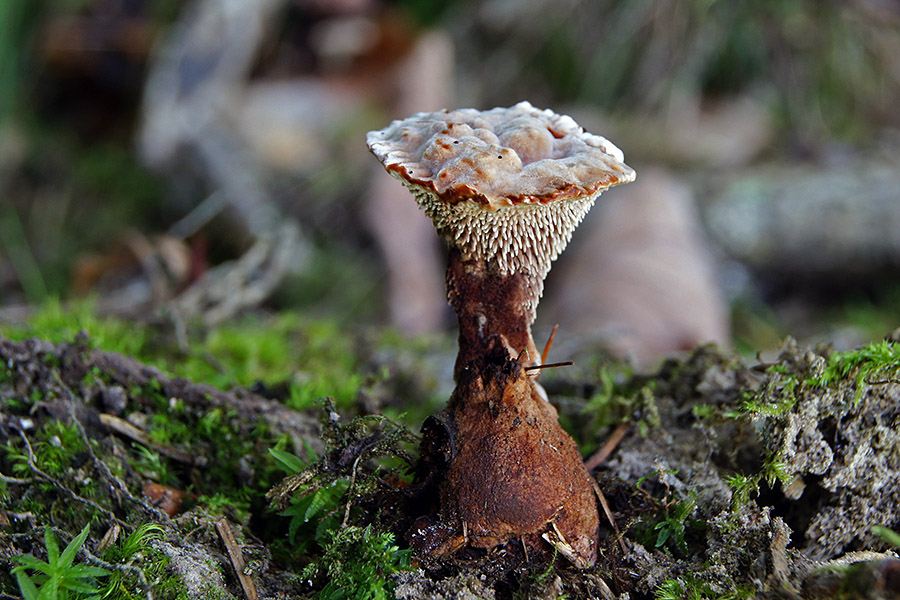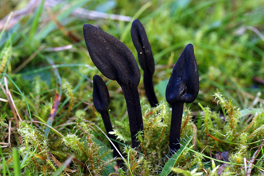 14. Besonders schön ist dabei, wenn man sich solchen "gewöhnlichen" Pilzchen wie Lacktrichterlingen widmet, dass einem auf dem Boden abhängend immer wieder neue Pilze begegnen, die man aus 190er Höhe sehr wahrscheinlich nicht wahrgenommen hätte. So auch diesmal. Die Erdzungen dort im Umkreis (wahrsch. G. cookeanum) warten bislang vergebens auf meine eindeutige Benennung und sind dieses Jahr noch nicht aufgetaucht. Und plötzlich steht da ein paar cm von meinem Rucksack eine andere Art, die mir in den letzten drei Jahren noch nicht begegnet ist, Gemeine Haarzunge - Trichoglossum hirsutum: