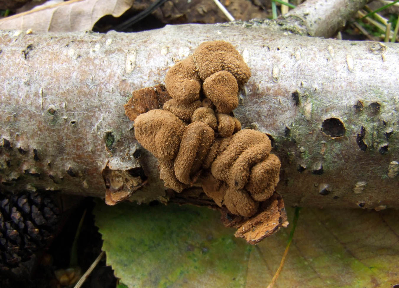 Das meinte wohl dieser Schwarzerlenast, über den ich heute stolperte, denn die Knubbel daran werden wohl nichts anderes werden wollen als Encoelia furfuracea (Kleiiger Haselbecherling).